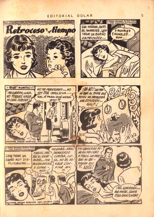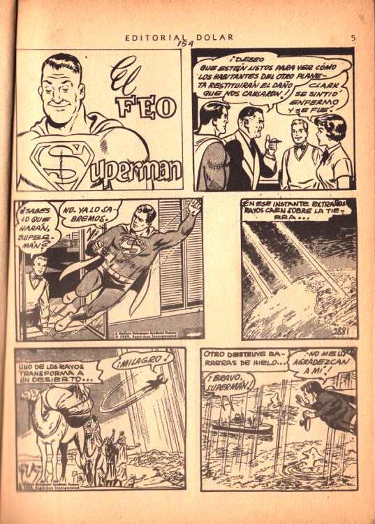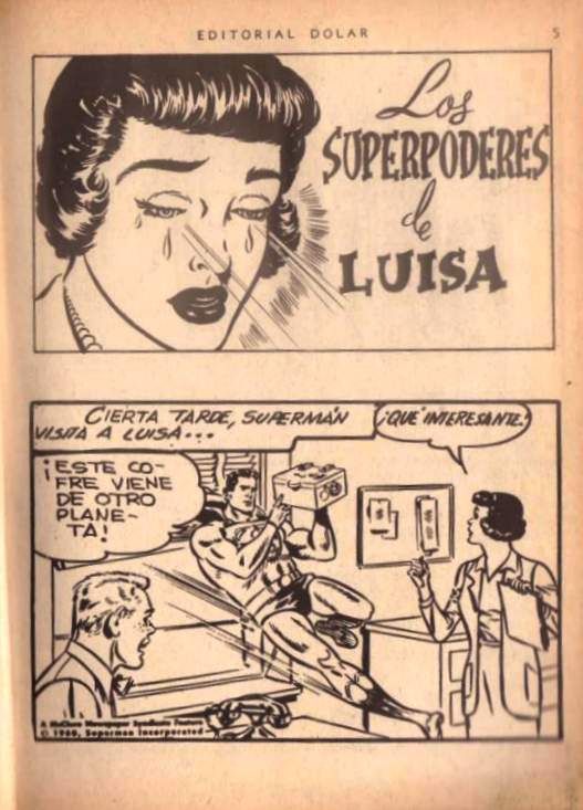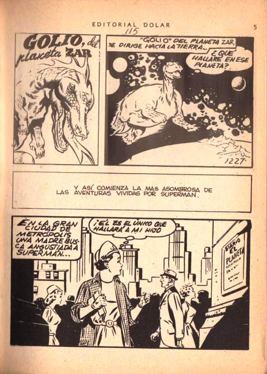 A título de curiosidad, vamos a reproducir a continuación, la introducción escrita que Editorial Dólar hizo en su primer ejemplar, pues usa un lenguaje paternalista, típico de la época y comete errores como atribuir la creación del personaje para la TV y mencionando como creador a Wayne Boring en vez de a Jerry Siegel y Joe Shuster.