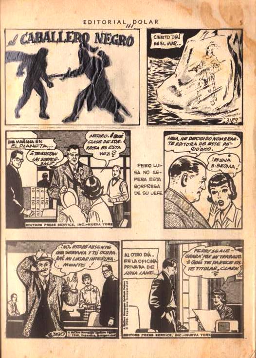 Al Plastino desarrolla en 46 viñetas la historia de la NOVELA 17, EL CABALLERO NEGRO. Lo hace en el SUPERMAN 124 de septiembre 1958 (NOVARO 201). Es decir que Curt Swan la dibujó 2 años después ocupando 111 viñetas para la versión de la prensa.